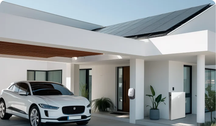 El cargador de vehículo eléctrico se integra en el sistema para priorizar el uso de energía solar y almacenada, reduciendo al mínimo el consumo de la red.